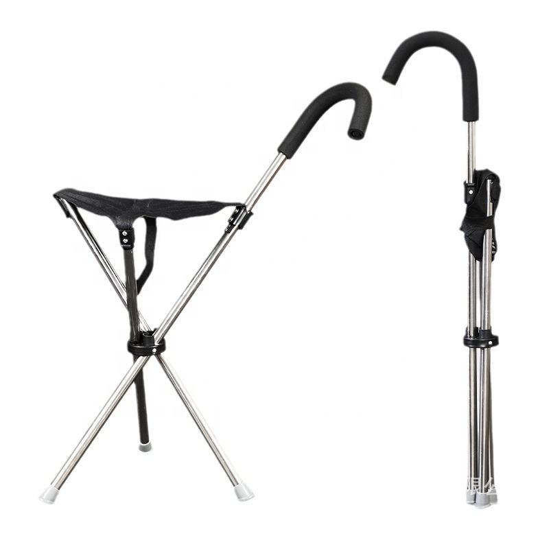 Factory Wholesale Folding Crutches Chair Aluminium Walking Stick with Chair