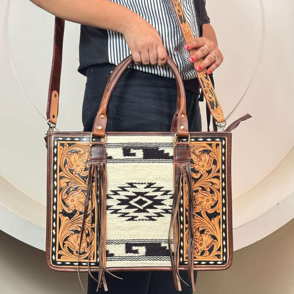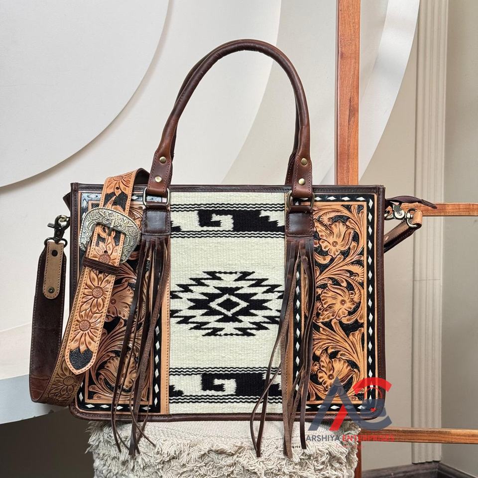 Type:Hand Tooled Leather Saddle Blanket Ladies Tote Bag