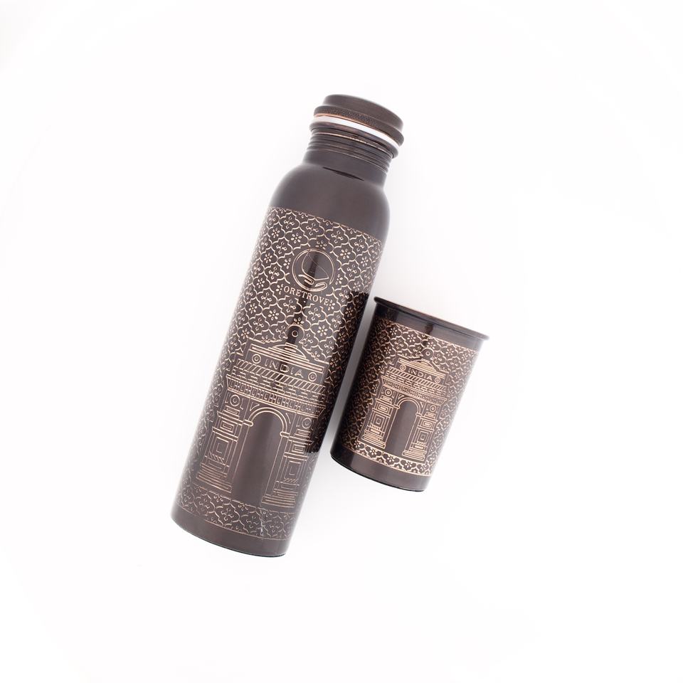 Factory Wholesale High Quality 100% Pure Copper Hammered 34OZ/1 Litre Ayurvedic Purity Drinkware Leak-Proof Cooling Water Bottle