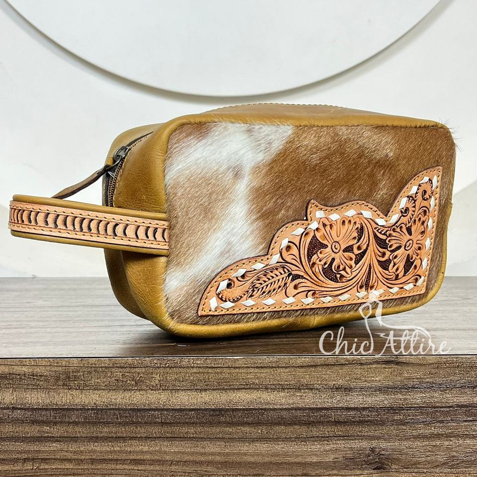 Hand-tooled Cowhide Women Makeup Bag