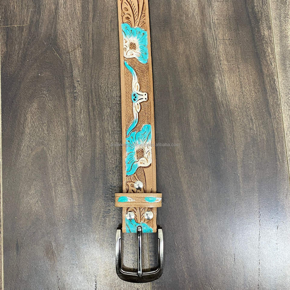 Product name:Hand Tooled Leather Pin Buckle Kids Belt