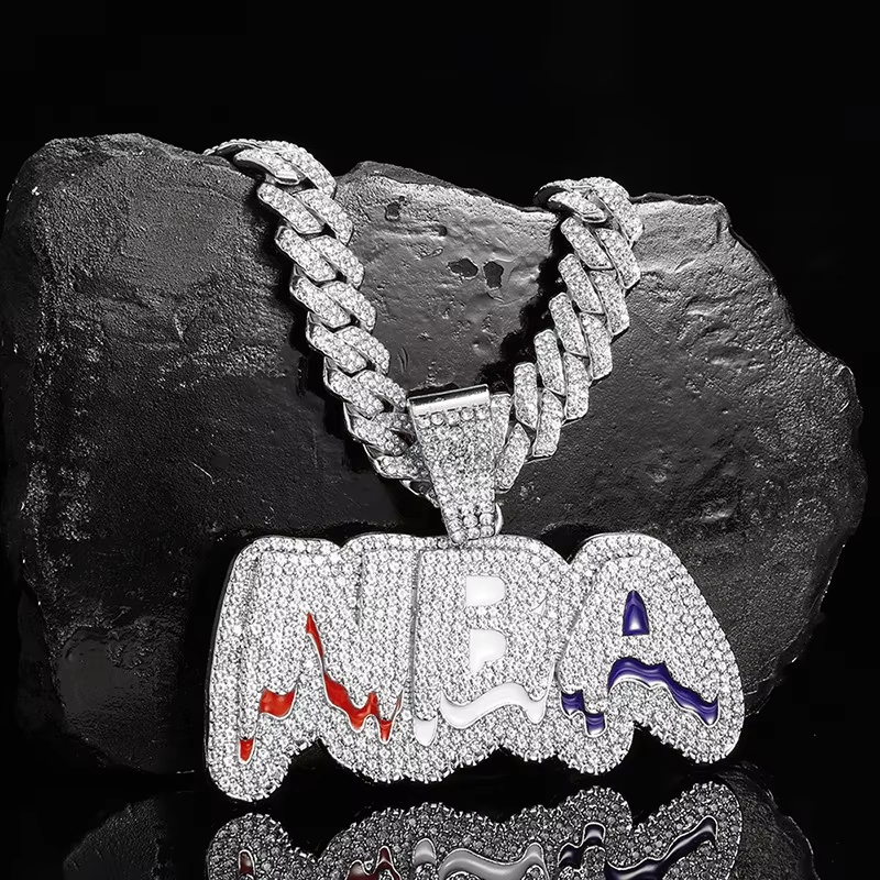 Factory Wholesale Hip Hop Iced Out High Quality Letter Pendant Rap Cuban Chain Necklace Jewelry Set New Year Gift