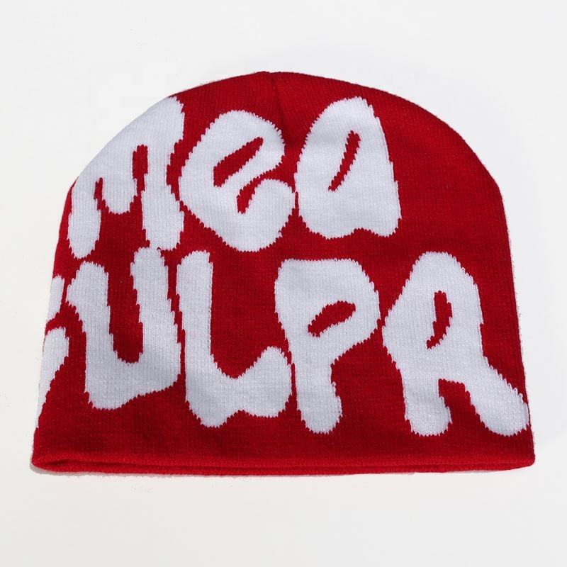 Factory Wholesale Jacquard Streetwear Unisex Custom Logo Winter Beanie Hats 100% Acrylic Dot & Bows Patterns Beach Ready