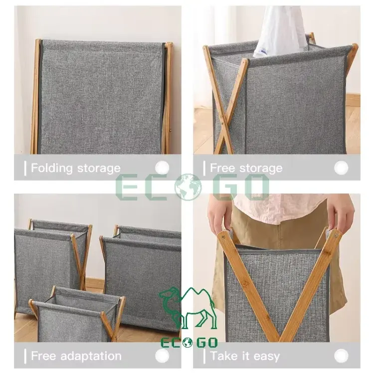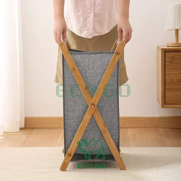 Factory Wholesale Large Collapsible Laundry Basket Home Dirty Clothes Organizer Grey Beige Bamboo Laundry Hamper