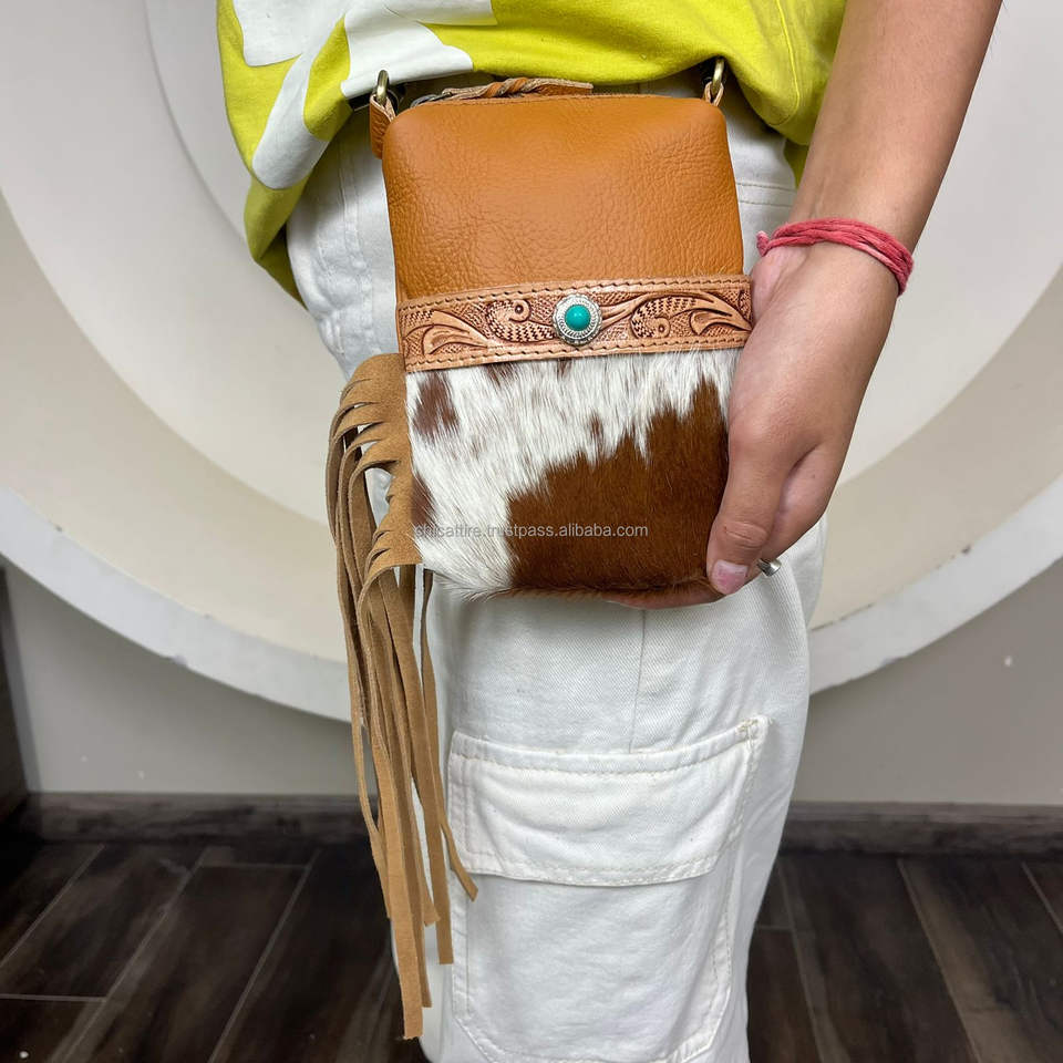 Product name:Hand Tooled Leather Zipper Fringe Phone Pouch