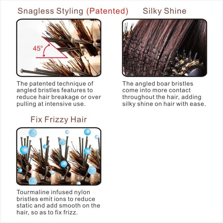 Factory Wholesale Low Price TONG FONG Model 9D075HHI Multi-purpose Hair Dryer Styling Brush Mixed Boar Bristle with Vent Feature