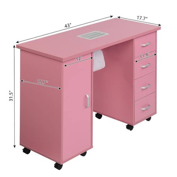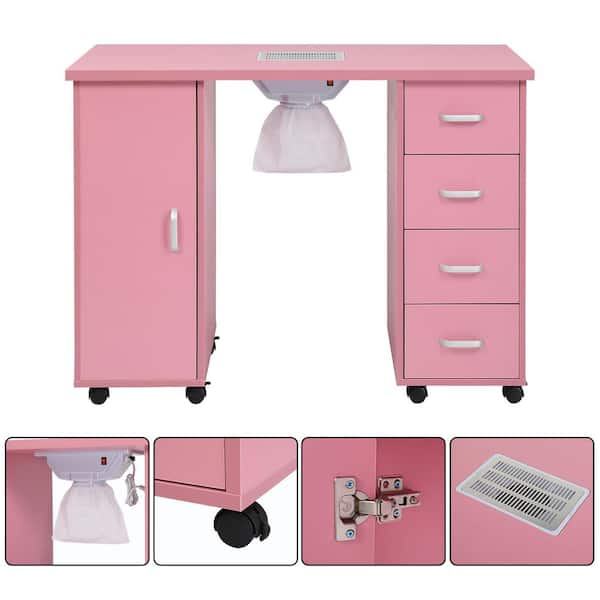 Factory Wholesale Luxury Wooden Nail Salon Manicure Table Pink Nail Bar Station Furniture