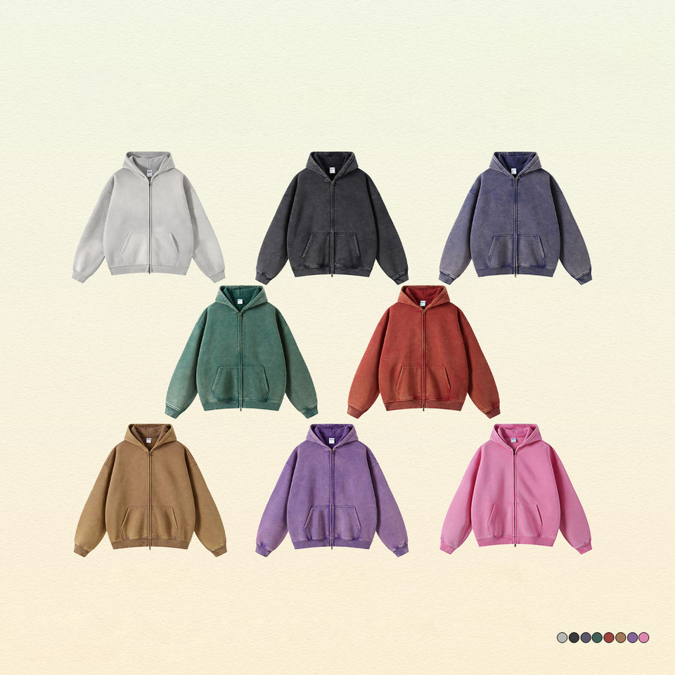 Factory Wholesale Men Vintage Washed Hoodie Custom Zipper With Double Sliders Streetwear Black Zip Up Athletic Workout Hoodie