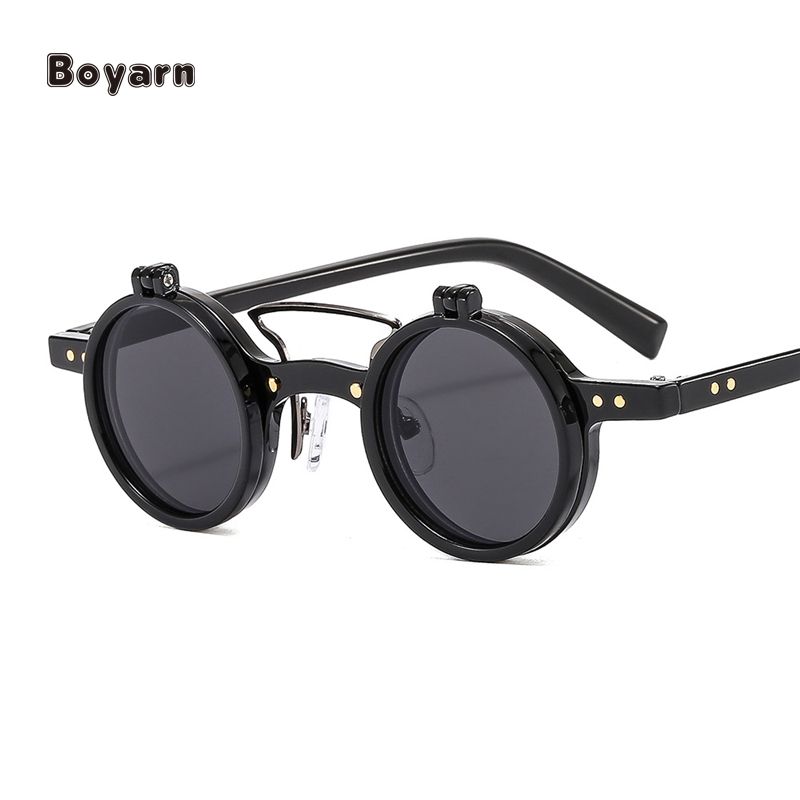 Factory Wholesale New Fashion UV400 Sunglasses Double Layer Flip Vintage Individuality Small Frame Punk Style Trendy Sunglasses