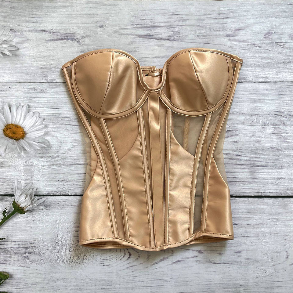 Factory Wholesale OEM Gothic Wedding Waist Trainer Fashioned under Bust Cincher Mesh Bustier Steel Boned Shapers Lace up Corset