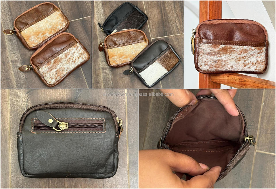 Factory Wholesale OEM Hair-On Cowhide Leather Luxury Wallet Ladies Coin Case Genuine Leather Card Holder & Coin Purse for Women