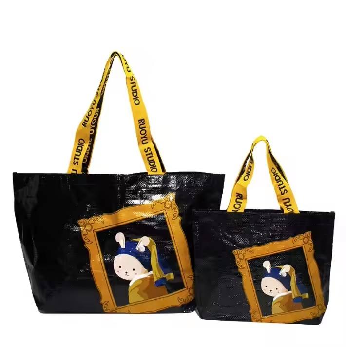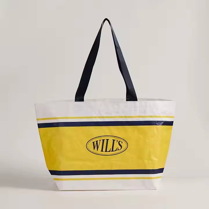 Factory Wholesale Oversize Recyclable Nylon Woven Bag Zipper Closure Double Shoulder Handles for Grocery Shopping Travel Custom