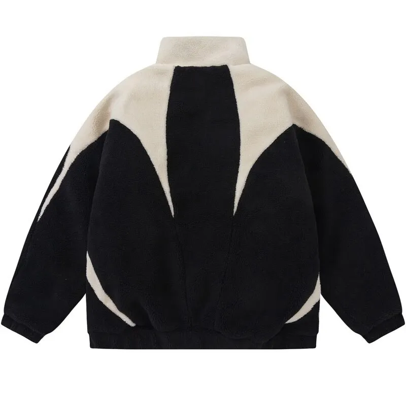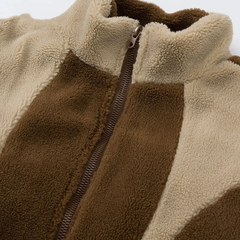 Factory Wholesale Patchwork Fluffy Fleece Jacket Custom Colorblock Patchwork Stand Collar Baggy Sherpa Fleece Hoodies for Winter