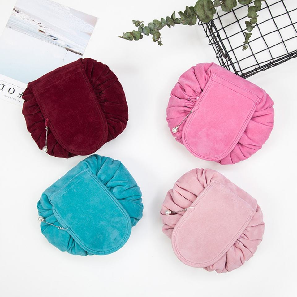 Factory Wholesale Portable Lazy Travel Cosmetic Bag Customized Velvet Fabric Drawstring Magic Makeup Bags
