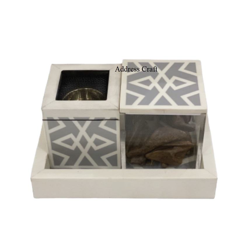 Factory Wholesale Price Bakhoor Burner Set Acrylic Box Resin Tray Resin Oud Box Decorative Bakhoor Set and Mubkhar at Best Price