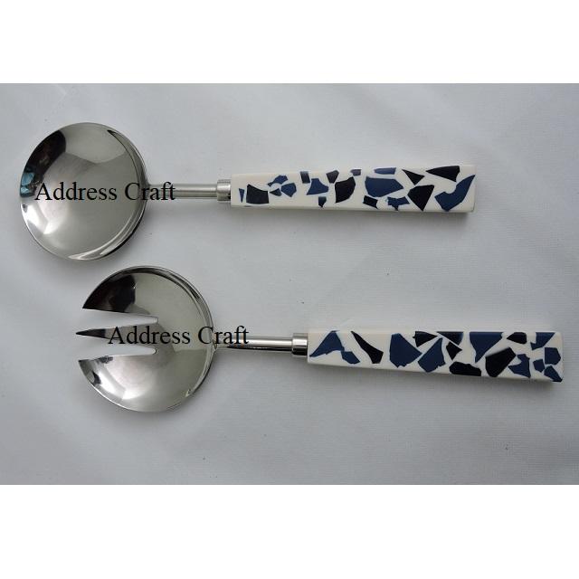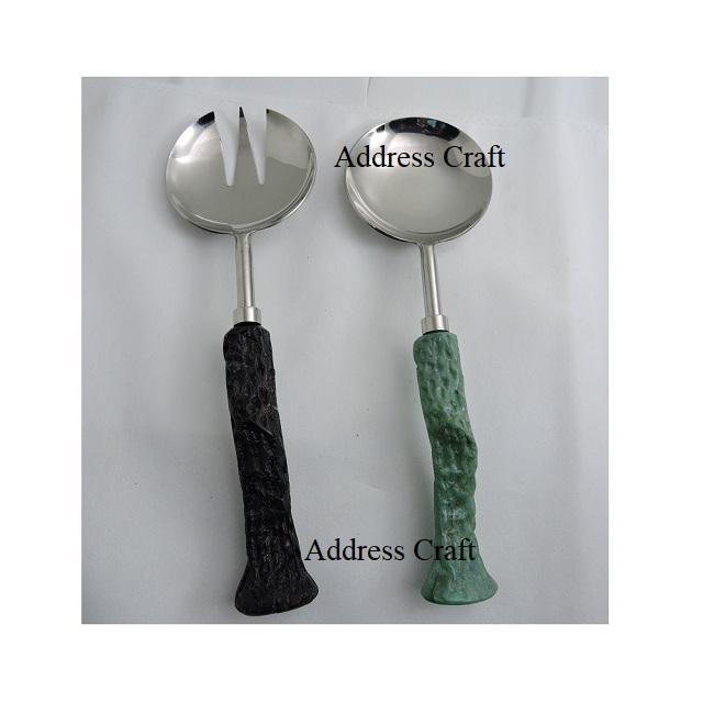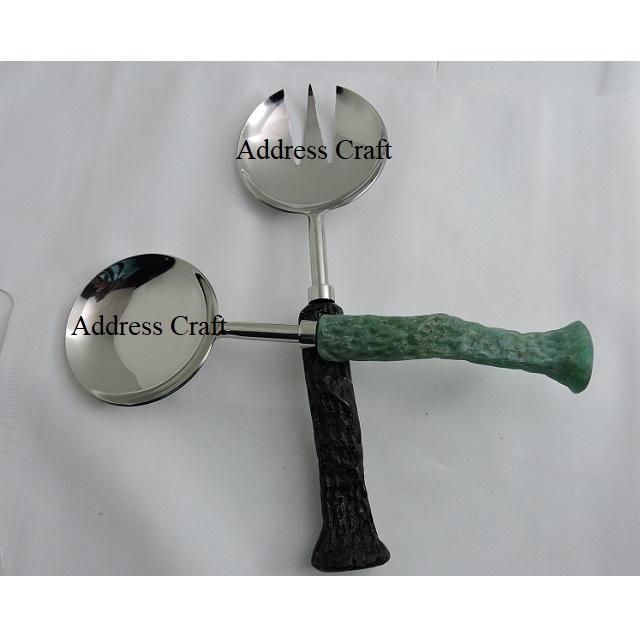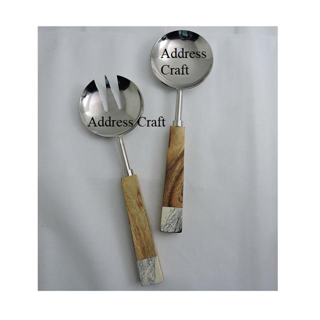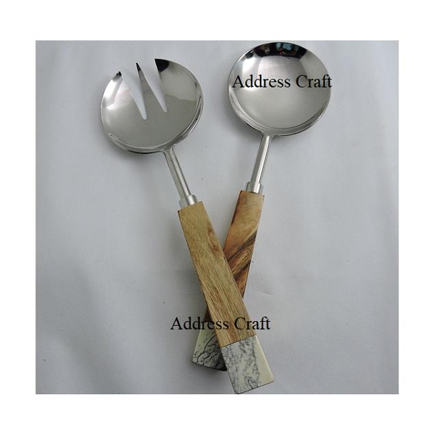 Factory Wholesale Price Reusable Cutlery 304 Steel Food Safe Salad Server Set With Wooden Handle Customized Salad Spoon Fork Set