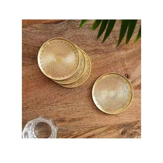 Factory Wholesale Set of 4 Small Brass Coaster with Brushed Finished Used for Table Top Counter Bar Accessories