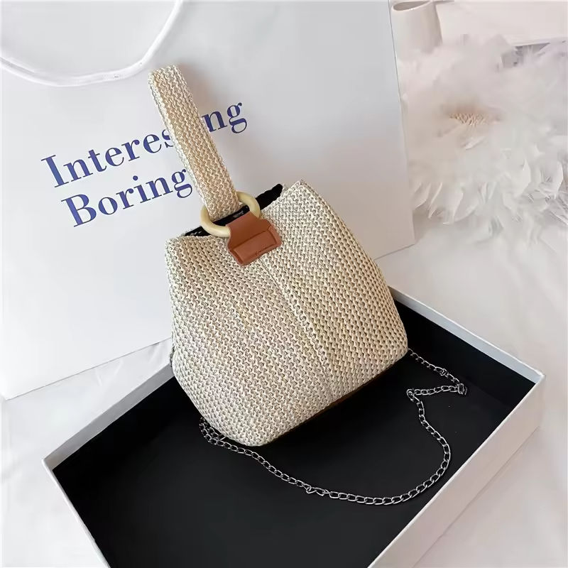 Factory Wholesale Straw Handbags Lady Woven Bags Woman Bucket Purses for Females