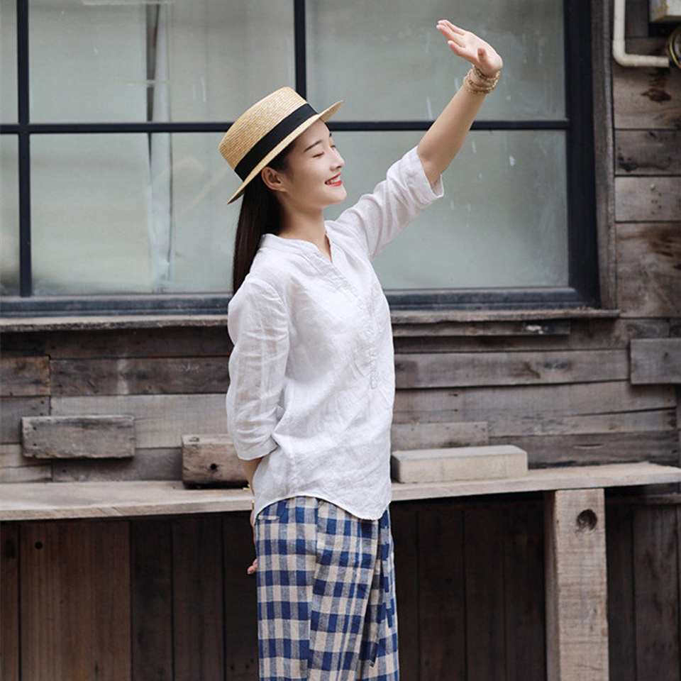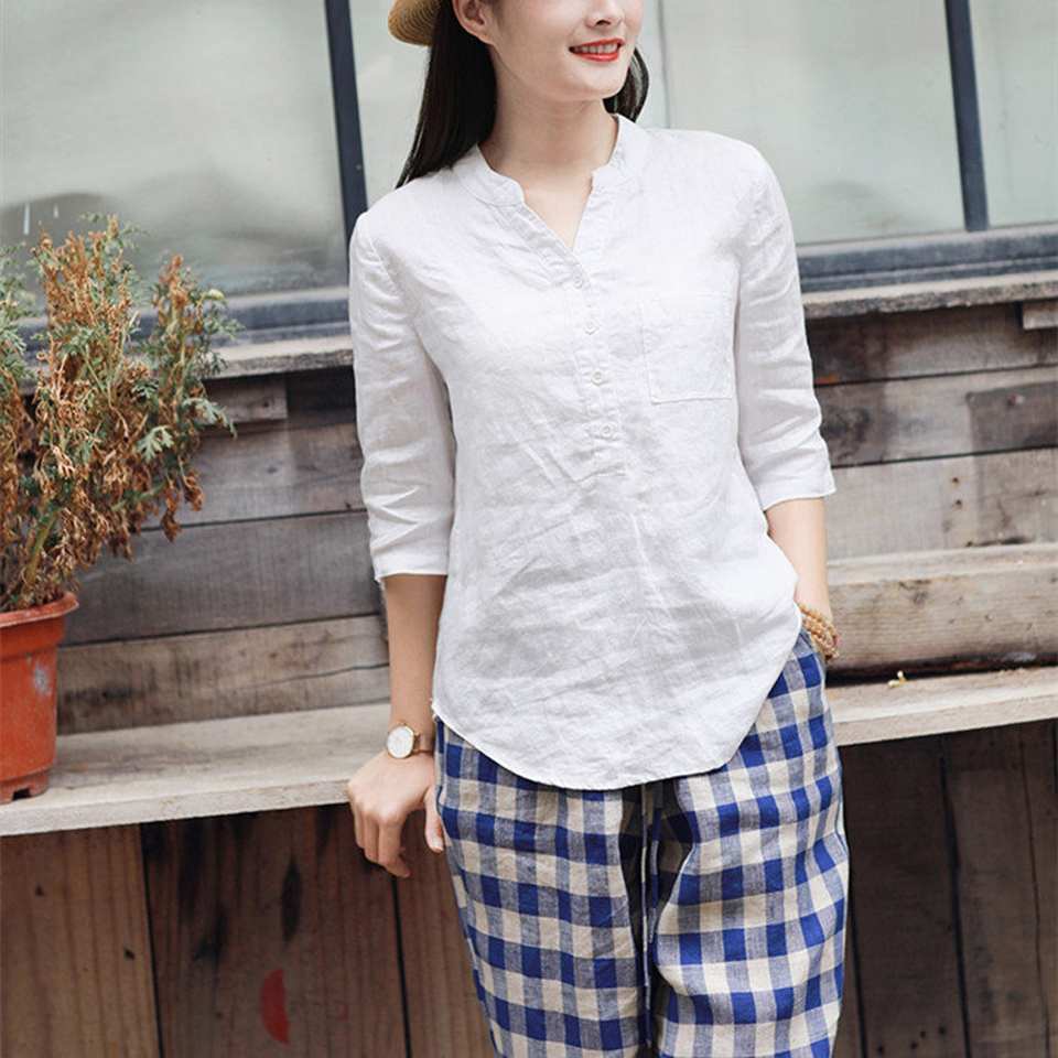 Product Name:Linen Long Sleeve V Neck Shirt
