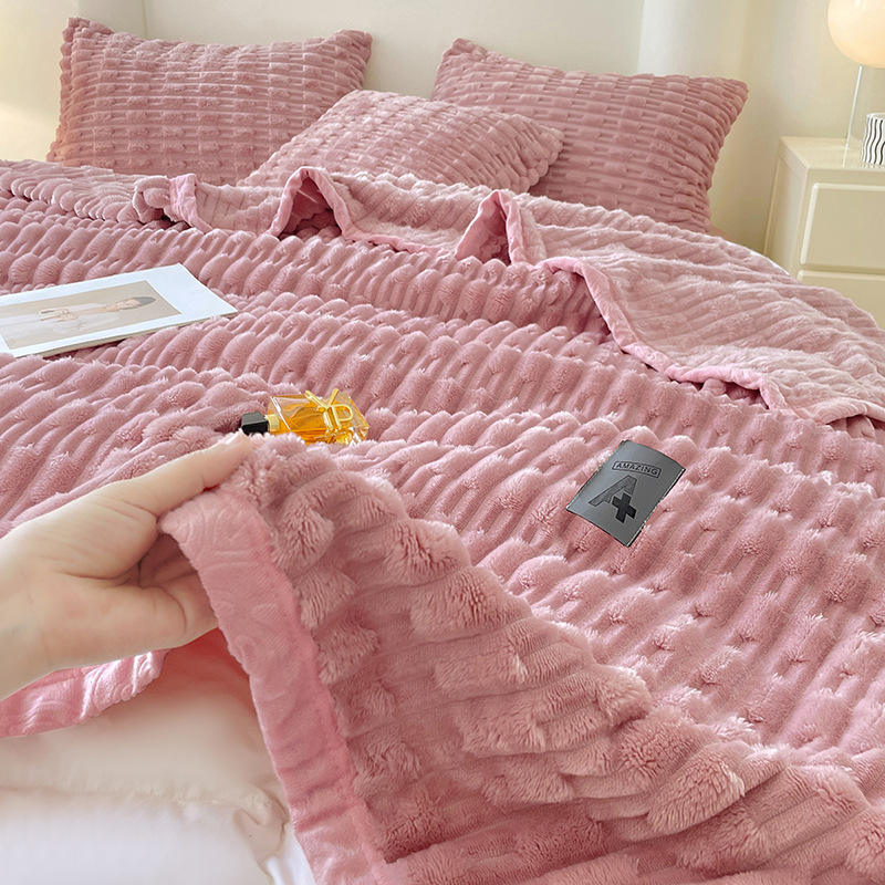 Factory Wholesale Super Soft Flannel Blanket Winter Thick Woven Throw for Home Bedding Sofa Office with Wide Stripe Design