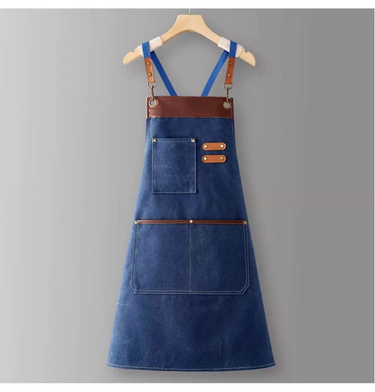 Factory Wholesale Thickened Canvas Bib Waterproof Work Apron for Gardening Foreign Trade Coffee Cross-Border Use-for Cleaning