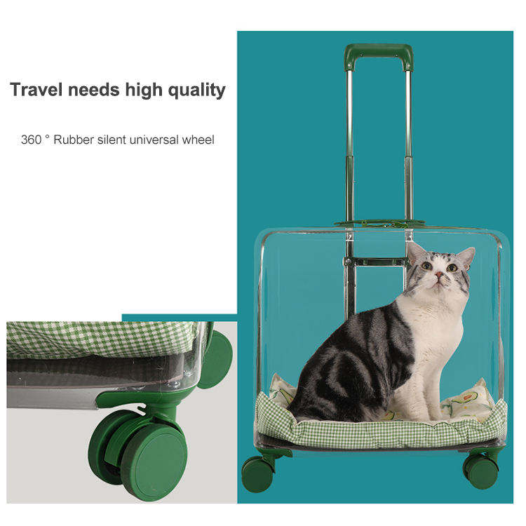 Factory Wholesale Transparent Cat Stroller Wheels Cat Luggage Boxes Pet Suitcase Carrier