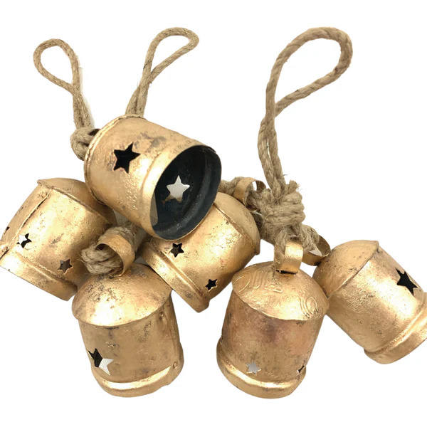 Factory Wholesale Vintage Handmade Harmony Jingle Bells with Rustic Finished Used for Lucky Christmas Hanging Decor with Rope
