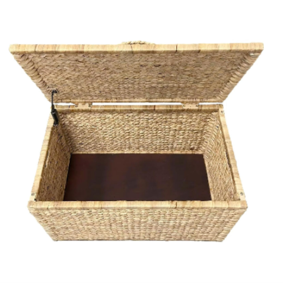 Factory Wholesale Water Hyacinth Wicker Storage Trunk with Metal Frame Bedroom Furniture Handmade From Vietnam