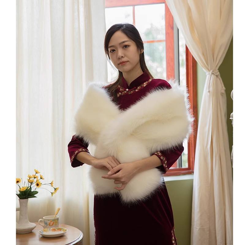 Factory Wholesale Winter Faux Fur Shawls Wraps Large Scarfs Women Wedding Party Bridal Long Fashion Solid Breathable