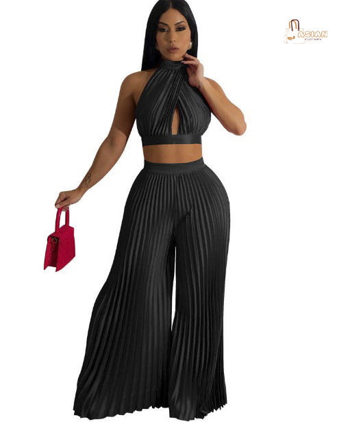 Factory Wholesale Women Clothing High Quality Women's Solid Color Crop Top Pants Set
