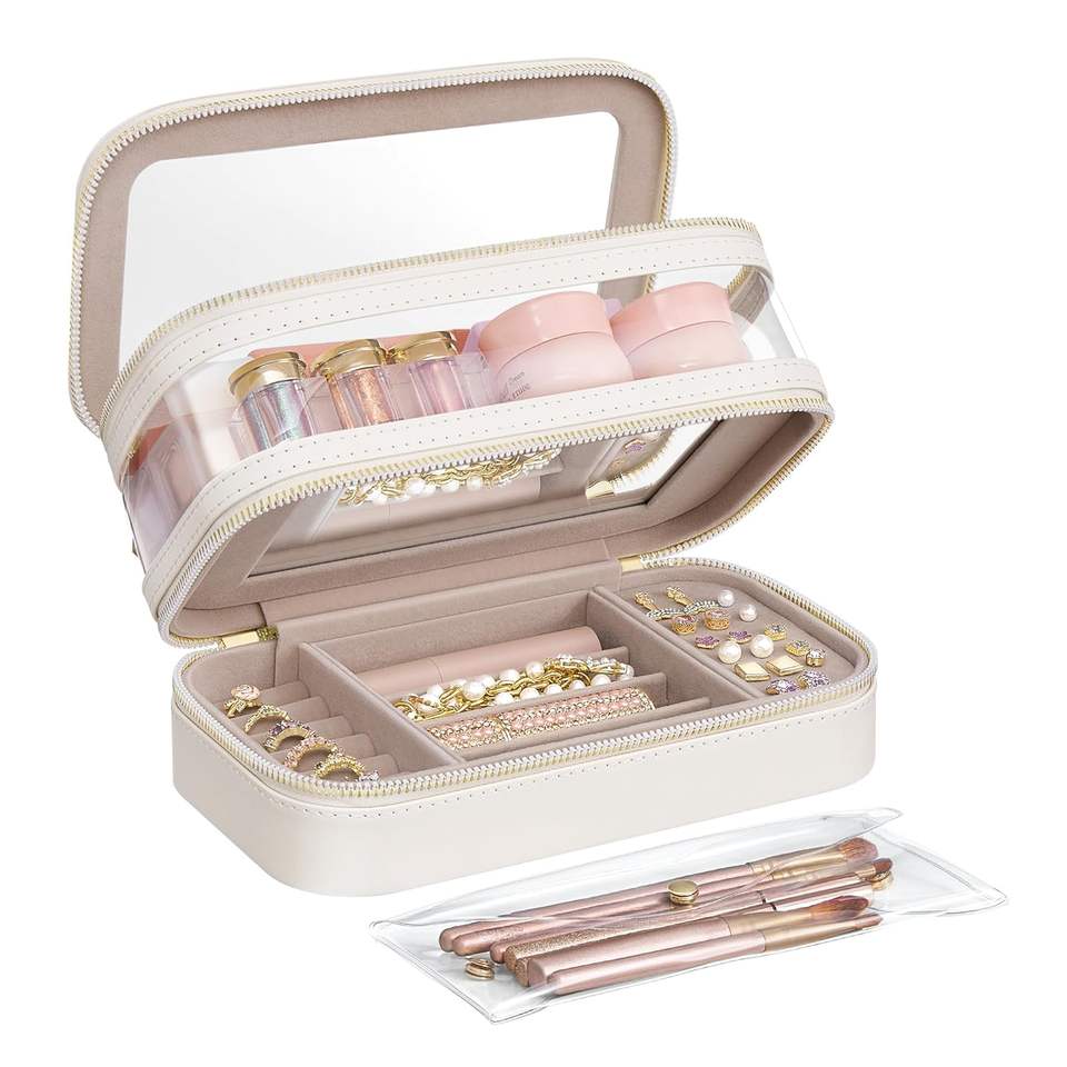 Factory With Jewelry Storage MirrorTravel Makeup Bag With Separate Brush Storage Pouch Transparent Gift Idea Makeup Bag