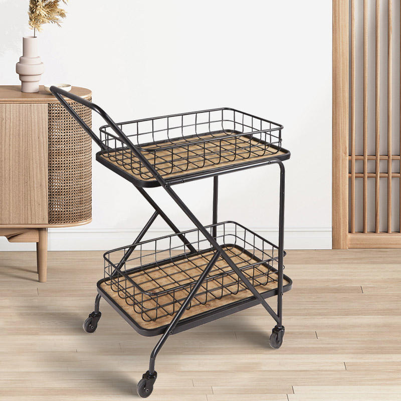 Factory Wood and Metal Dining Serving Cart and 2 Tiers Rack for Kitchen Food Trolley Rolling Kitchen Island Cart on Wheels