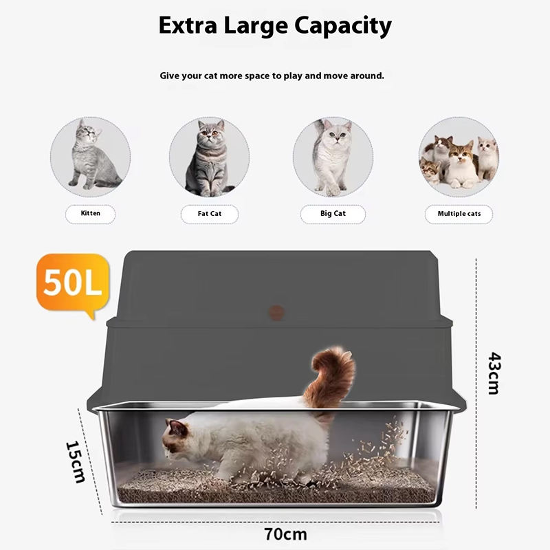 Factory XXXL Stainless Steel Litter Box with Lid Non-Sticky with High Sides & Anti-Leakage Lid Easy Clean Toilet for Big Cats