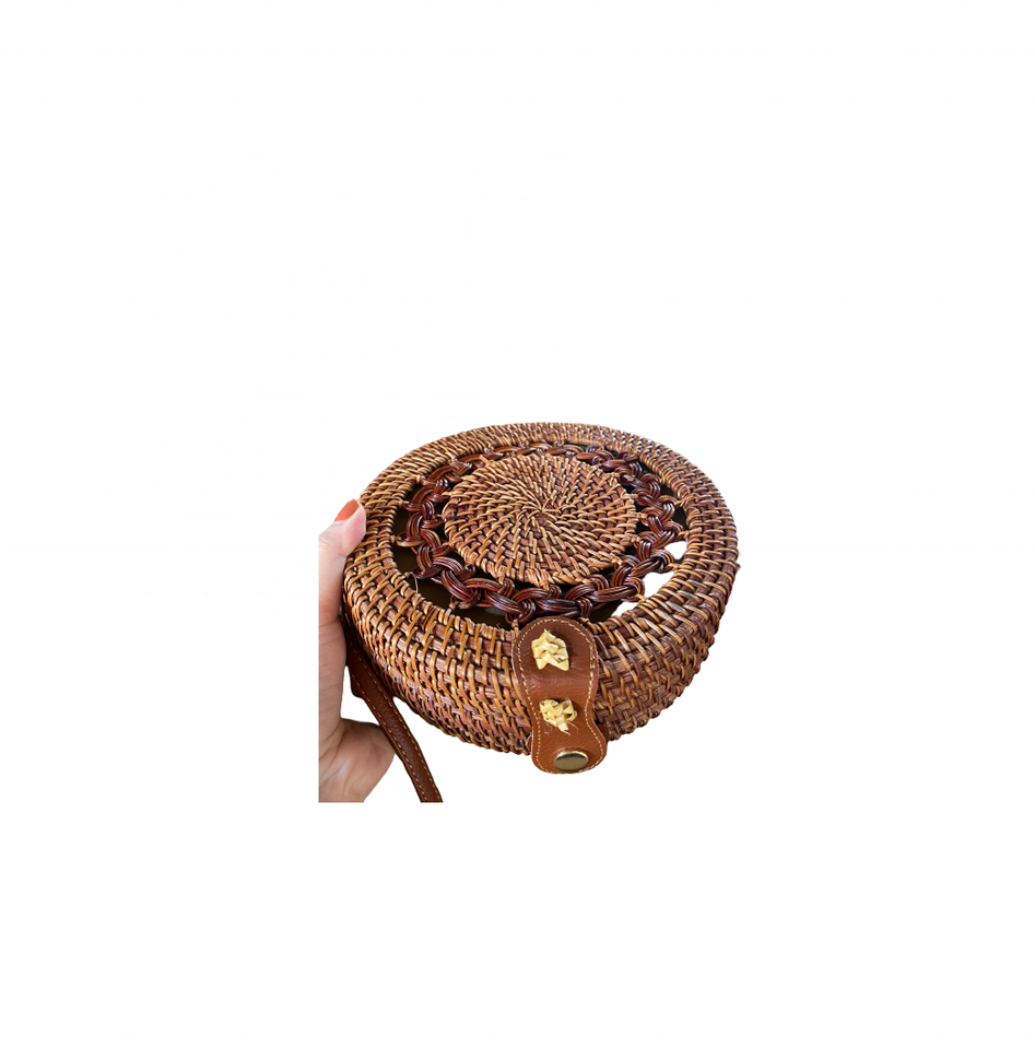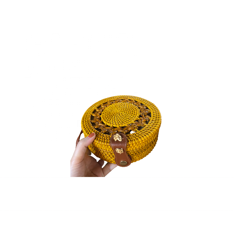 Factory Yellow Boho Rattan Beach Bag with Shell/ Custom logo Rattan Sling Bag/ Round Rattan Crossbody Bag for Summer Women Gift