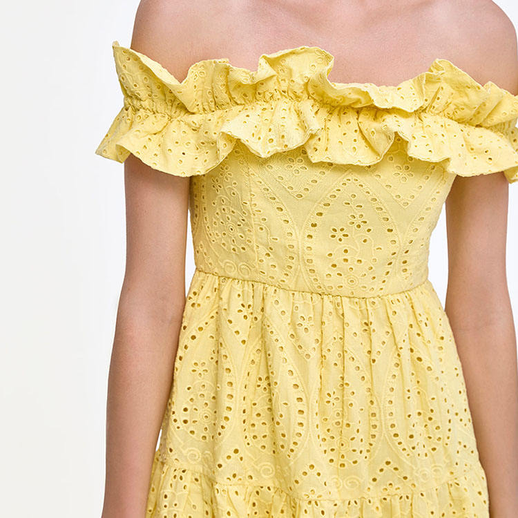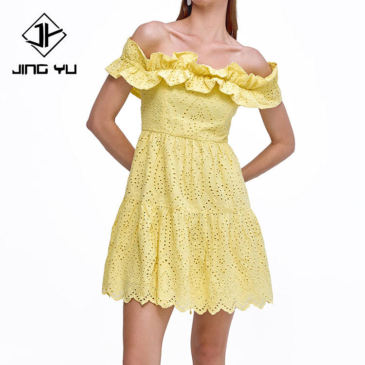 Factory design hollowed-out embroidered lace strapless mini dress custom organic cotton embroidery dress