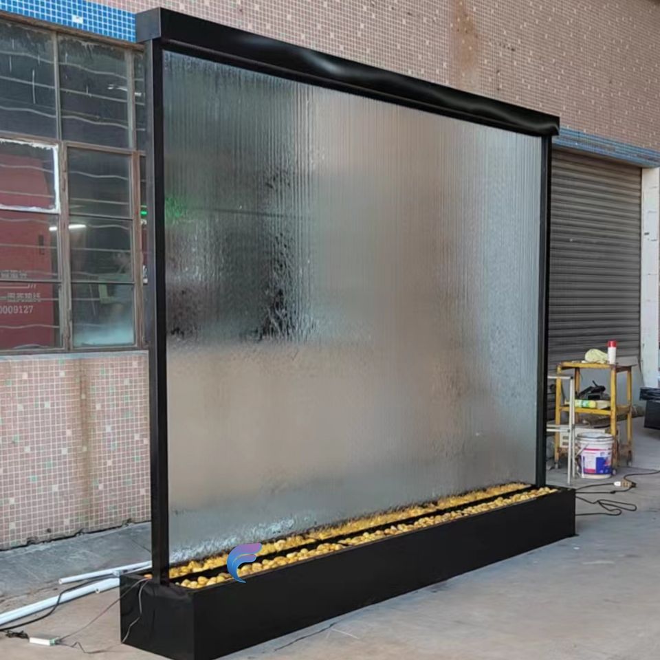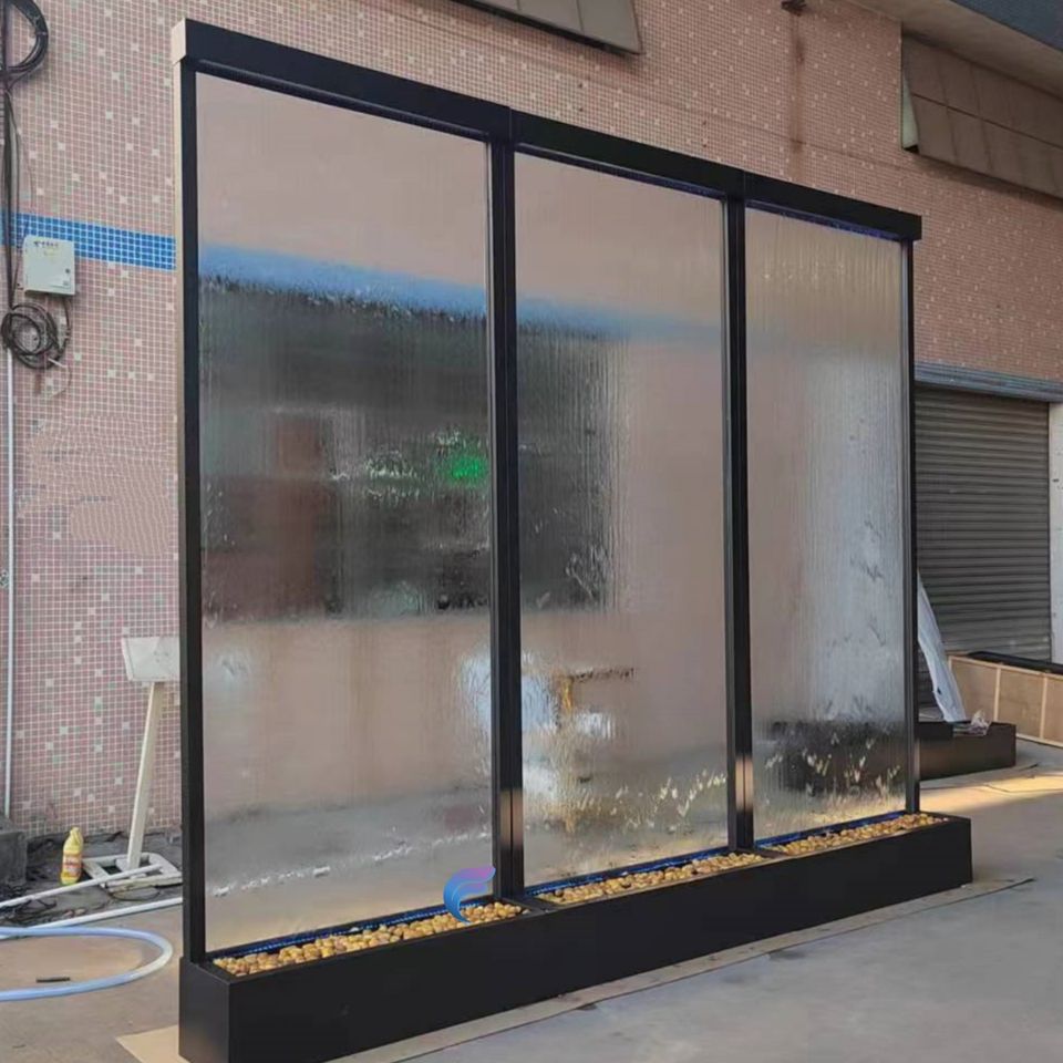 Factory direct sale tempered transparent glass water fountain stainless steel waterfall walls