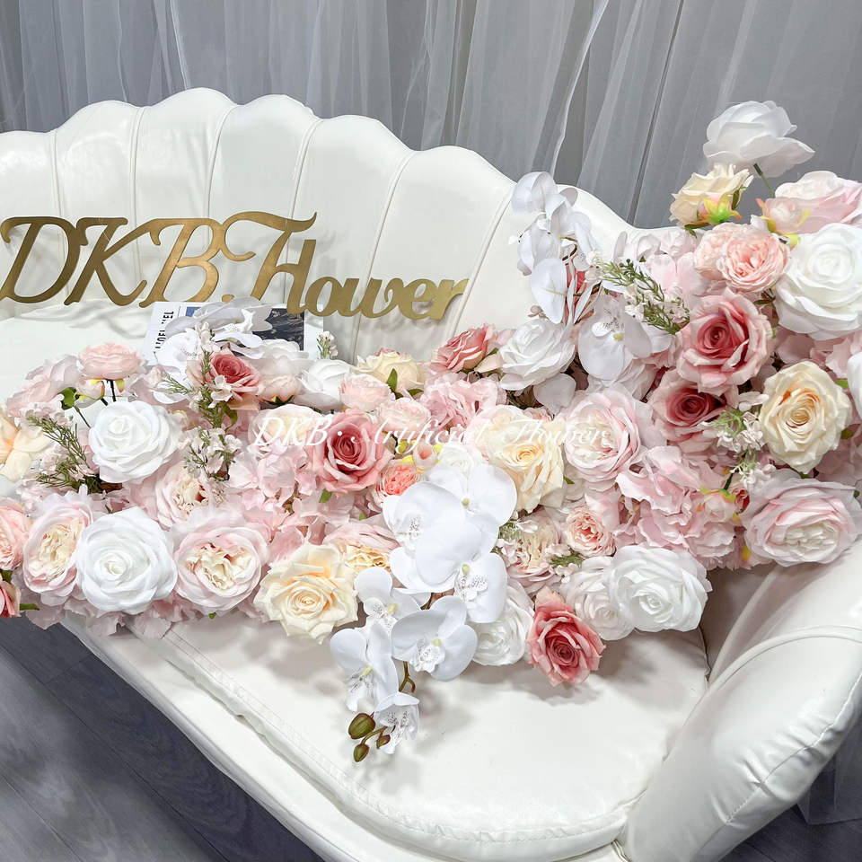 Factory low price custom high quality flower runners luxury artificial silk pink and white flower runner