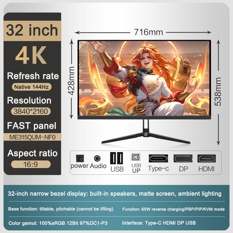 Product Name:32-inch 4K 144HZ Fast IPS supports VRR.HDMI2.1