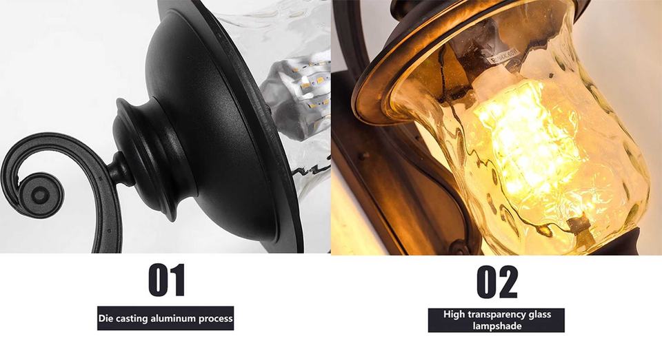 European Style Cylinder Outdoor Wall Lamp LED Garden Light IP65 Waterproof with Light Sensor