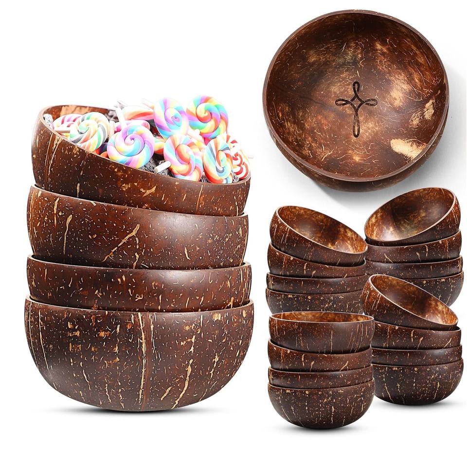 Factory price coconut dessert bowls food safe handmade natural coco shell bowl and spoon set