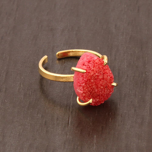 Wholesale affordable price crystal red sugar agate druzy adjustable ring brass gold plated pear shape back open claw set ring