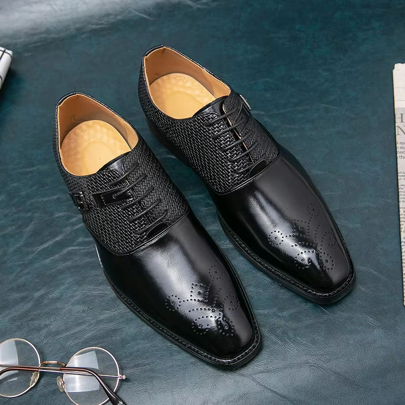 012 Clever Men's Black Genuine Leather Classic Shoes