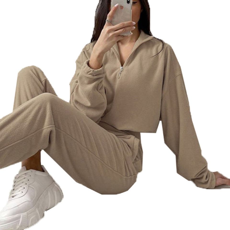 Factory's Women's Fashionable 2-Piece Shorts Set High-Lapel Pullover with Bag Zipper New Autumn Winter Tracksuit