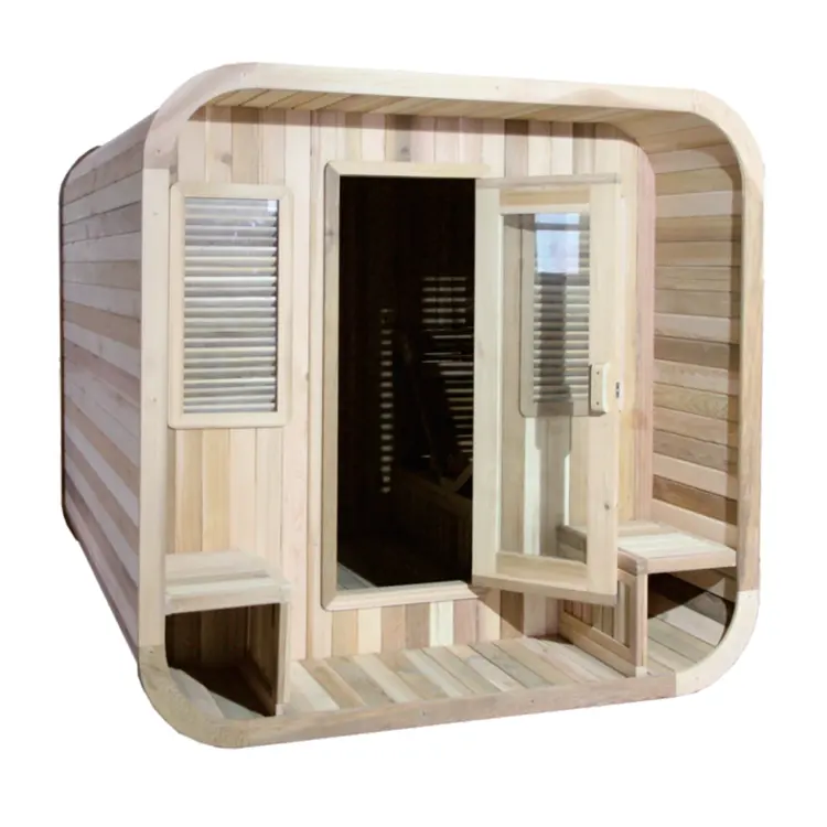 Factory sale cheap5- 6 person outdoor red cedar wood large sauna wet steam traditional square bath sauna cabin for sale