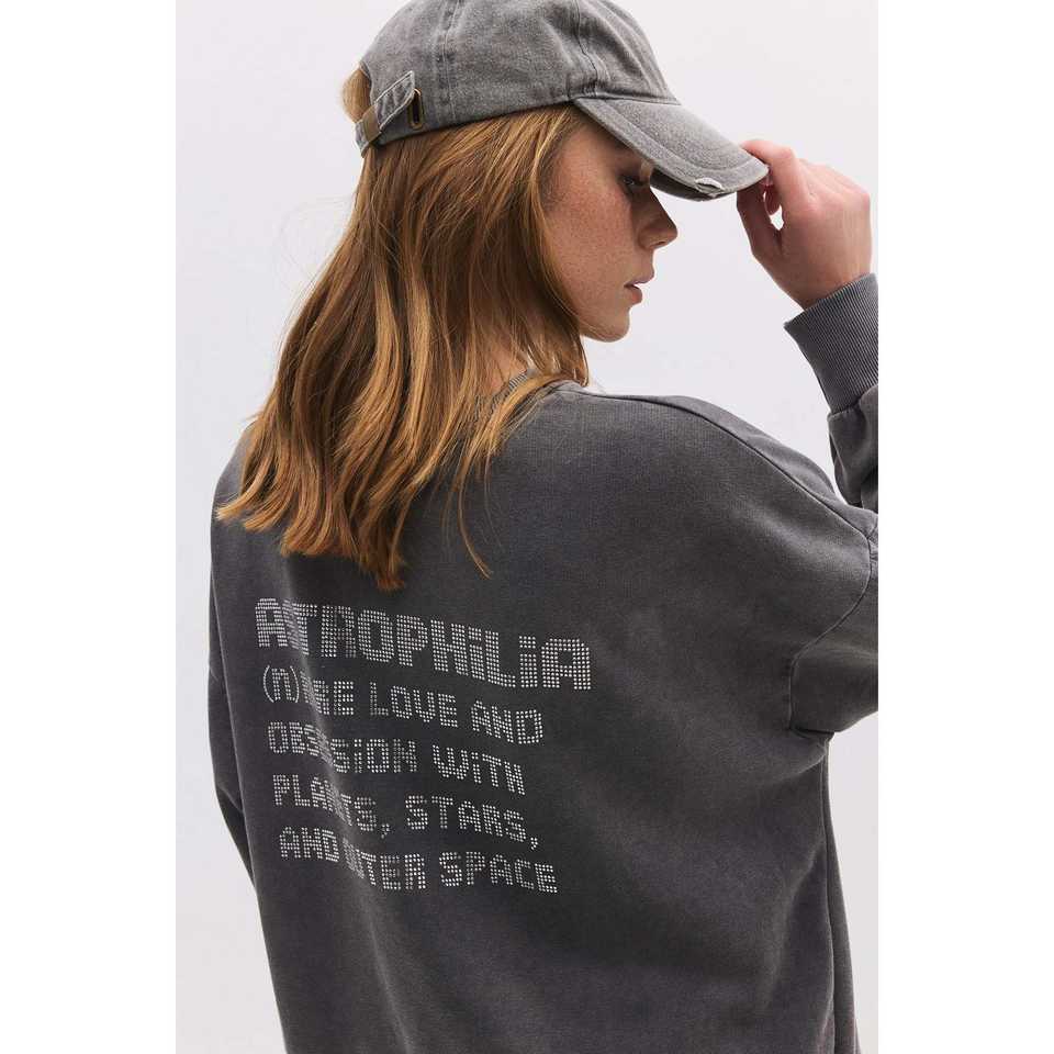 Faded Effect Daily Slogan Sweatshirt 100% Cotton