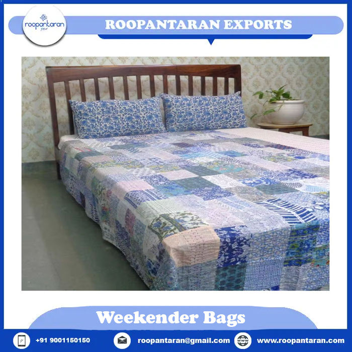 Fair Trade Organic Cotton Summer Quilt Unique Bohemian Design Soft Lightweight Patchwork Kantha Hand Block Printed for Hotels