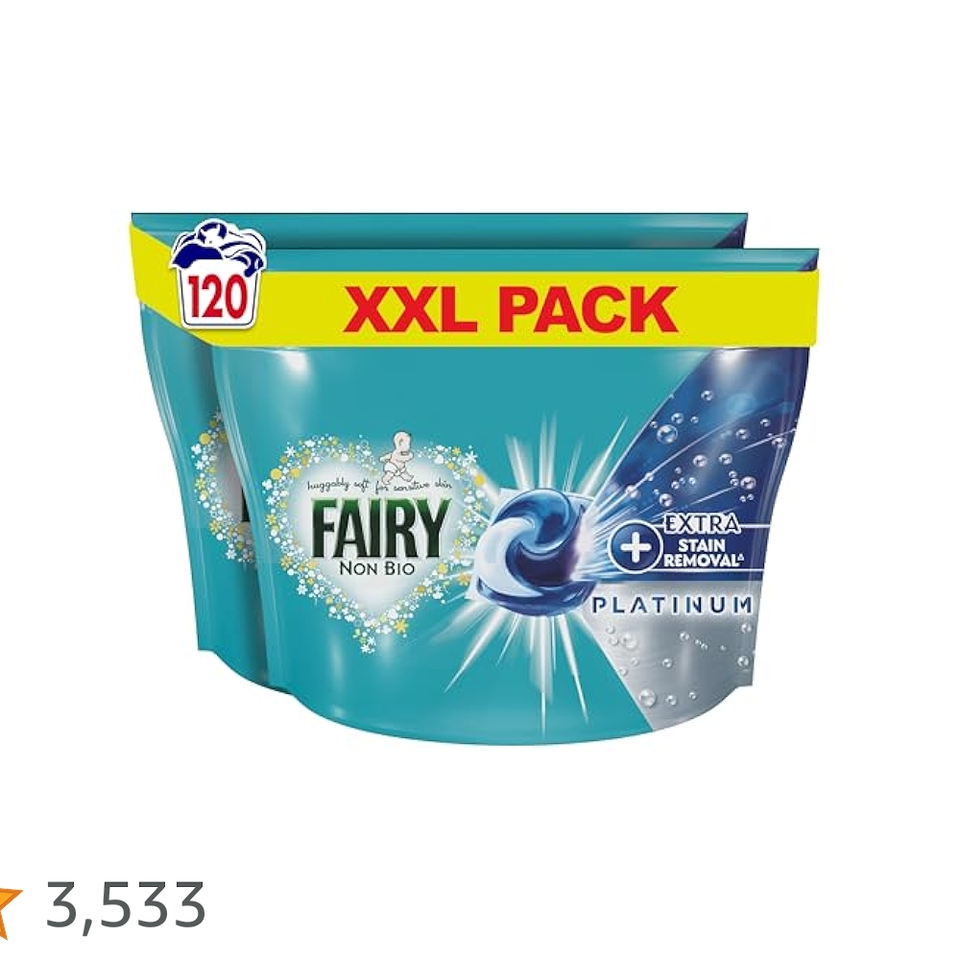 Fairy Non Bio Pods Washing Liquid Laundry Capsules, Fairy Pods, 120 Washes, Platinum With Extra Stain Removal For Sensitive Skin