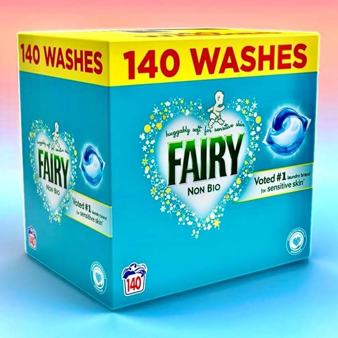 Fairy Non Bio Solid Laundry Detergent Tablets/Capsules 140 Washes for Leather & Kitchen Use Above 80% Active Ingredients