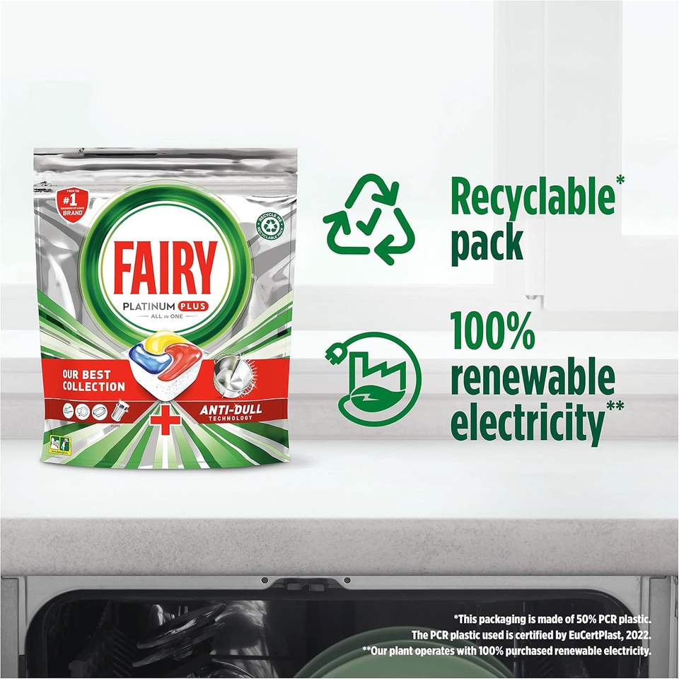 Fairy Platinum Plus All In One Dishwasher Tablets, Lemon, 18 Tablets, Our Best Cleaning For A Clean Like New, Removes Dullness