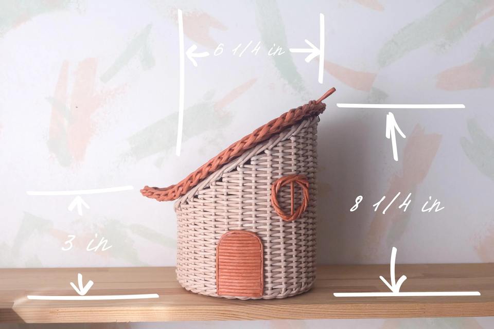 Fairy tale house shaped rattan storage box Size: D6,3 x H8,3 inch
